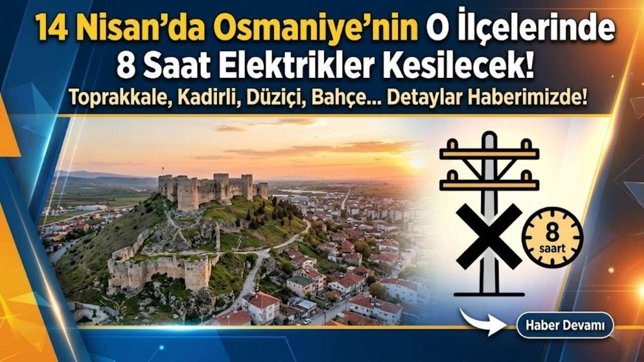 Osmaniye genelinde yürütülen şebeke iyileştirme çalışmaları kapsamında, 14 Nisan 2026 Salı günü Düziçi ve Merkez ilçelerinde geniş kapsamlı elektrik kesintileri uygulanacağı açıklandı. Enerji dağıtım şirketi tarafından yapılan duyuruya göre, bakım ve onarım çalışmaları nedeniyle birçok mahalle ve sokak saatlerce enerjisiz kalacak.