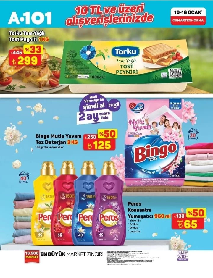 Ayrıca kasada 10 lira ve üzeri alışveriş yapanlara özel fırsatlar da belirlendi. Bu kapsamda 3 kilogramlık Bingo Mutlu Yuvam Toz Deterjan 125 liraya, Peros Konsantre Yumuşatıcı ise 65 liraya düşecek.