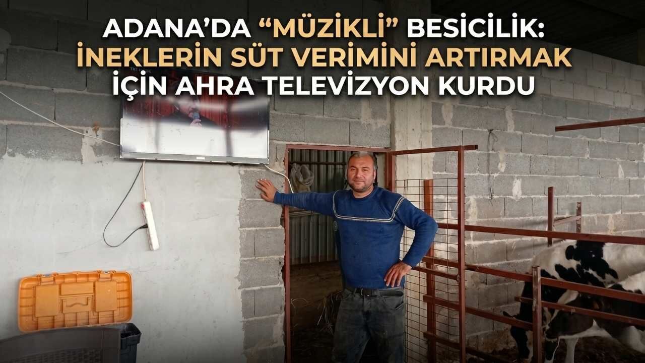 Olay, Feke ilçesine bağlı Koçyazı Mahallesi’nde yaşandı. Bölgede uzun yıllardır hayvancılıkla uğraşan Mürsel İmir, hayvan psikolojisinin verim üzerindeki etkisini araştırdıktan sonra ilginç bir adım attı. Ahırın dış cephesine çanak anten taktıran İmir, içeriye de geniş ekran bir televizyon yerleştirdi.