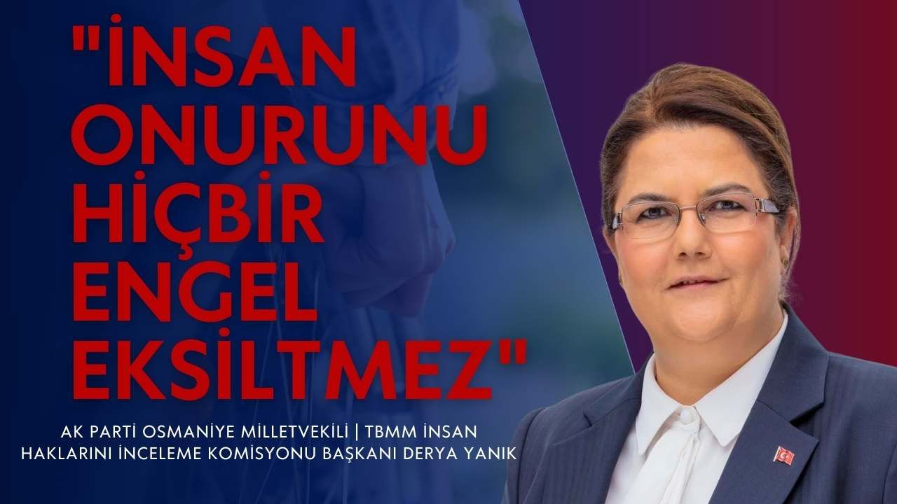 AK Parti Osmaniye Milletvekili ve TBMM İnsan Haklarını İnceleme Komisyonu Başkanı Derya Yanık, 3 Aralık Dünya Engelliler Günü dolayısıyla yayımladığı mesajda, insan onurunun yaradılıştan geldiğini ve hiçbir engelin bu değeri eksiltmeyeceğini vurguladı. Yanık, toplumun tüm bireylerinin aynı yaşamın parçası olduğunu hatırlatarak, engelli vatandaşların sosyal hayatta daha güçlü şekilde var olmaları için yürütülen çalışmalara dikkat çekti. Mesajında, spor, sağlık ve eğitim gibi birçok alanda engelli bireylerin elde ettiği başarıların tüm topluma ilham verdiğini söyleyen Yanık, kapsayıcı politikaların kararlılıkla sürdürüldüğünü ifade etti.