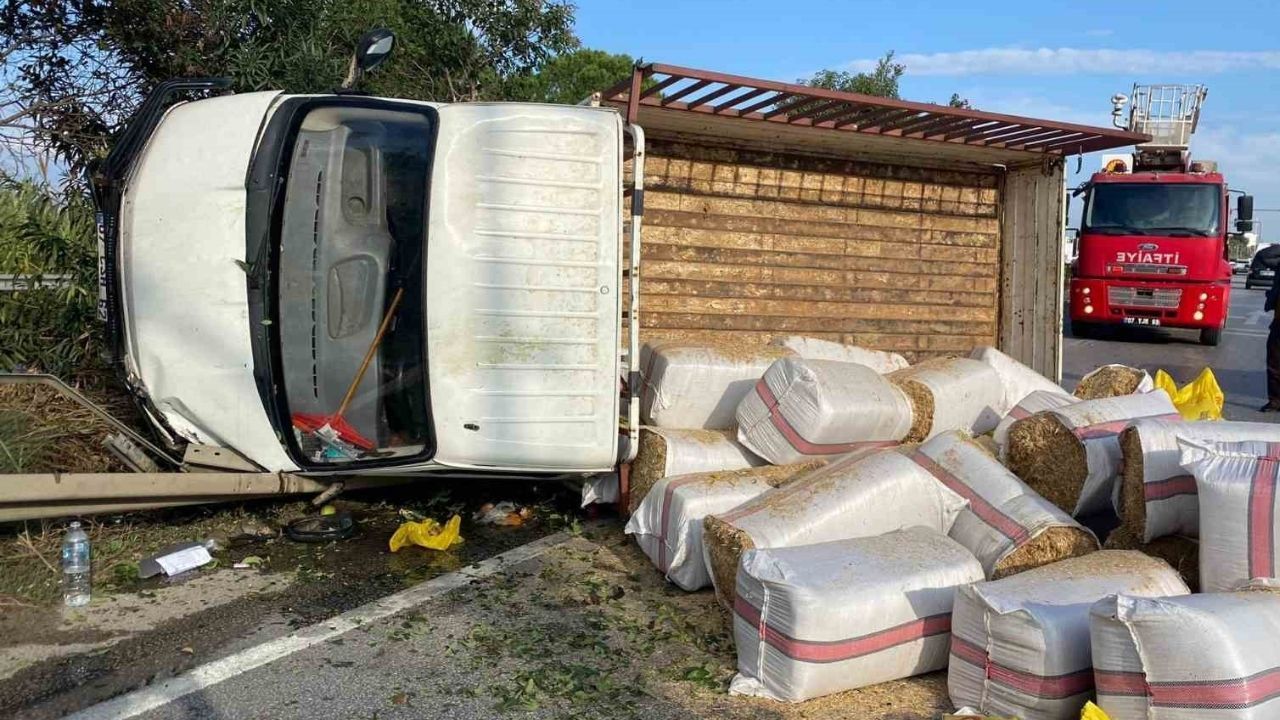 Antalya’nın Serik ilçesinde D400 kara yolunda saman yüklü bir kamyonetin devrilmesi sonucu trafik kısa süreliğine aksadı. Burmahancı Kavşağı’nda meydana gelen kazada, 55 yaşındaki Recep K.’nin kullandığı kamyonet, sürücünün direksiyon hâkimiyetini kaybetmesiyle refüjdeki demir bariyerlere çarptı. Çarpmanın etkisiyle yan yatan aracın kasasındaki samanlar yola saçıldı.