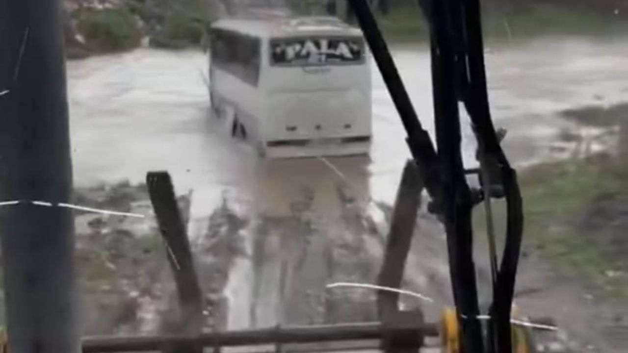 Osmaniye’nin Toprakkale ilçesinde etkili olan sağanak yağış, günlük yaşamı olumsuz etkiledi. İşçileri bıraktıktan sonra dönüşe geçen bir servis aracı, yağış nedeniyle debisi yükselen Karaçay Deresi’nde mahsur kaldı.