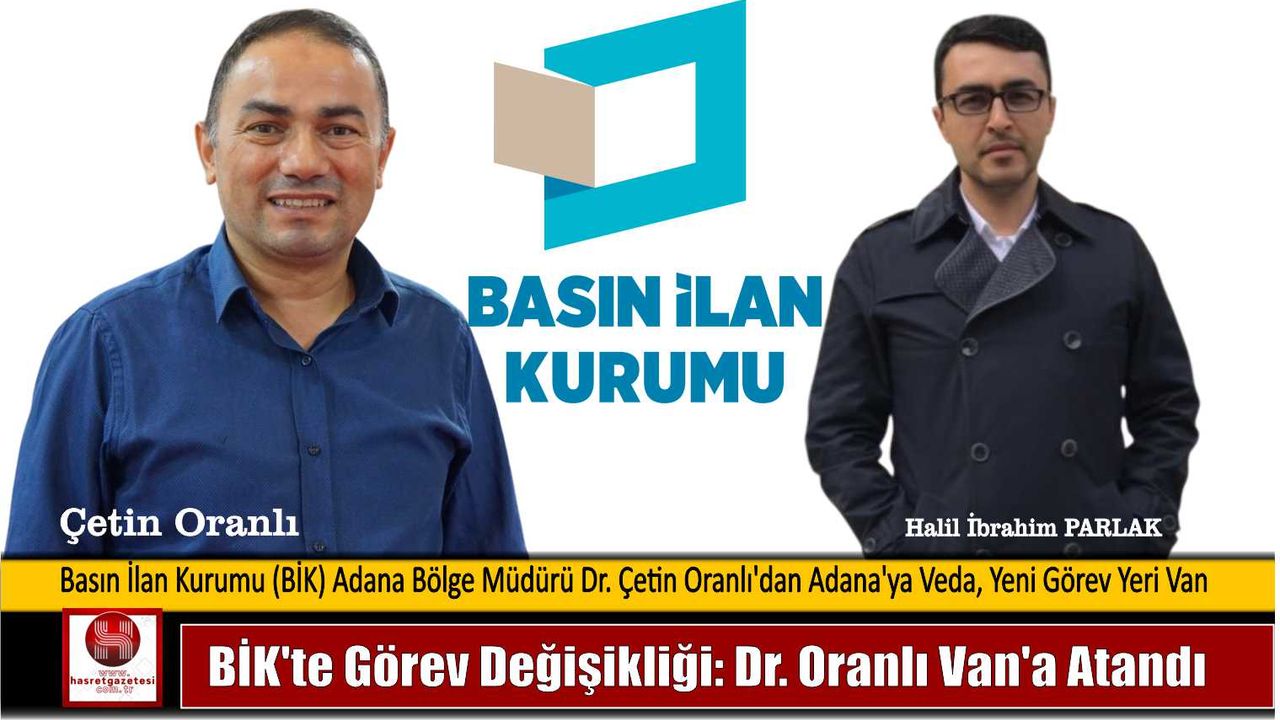 Basın İlan Kurumu (BİK) Adana Bölge Müdürü Dr. Çetin Oranlı, Van Bölge Müdürlüğü görevine atandı.