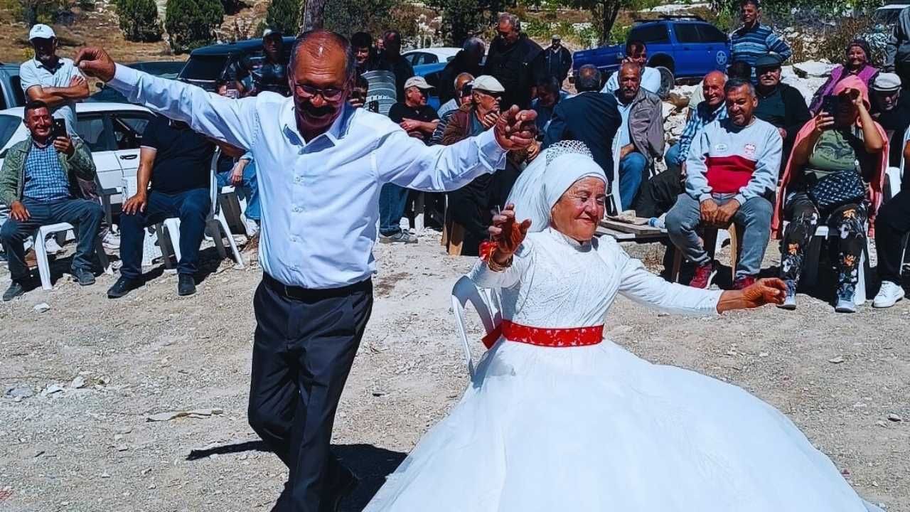 Düğün öncesinde bindallısını giyerek kına gecesi düzenleyen Halide Takmet, ilk dansını eşiyle yaptı. Ardından davetlilerle birlikte neşeli anlar yaşandı. Düğün günü geldiğinde ise gelinliğini giyen Halide Takmet’in kırmızı kuşağını ağabeyi bağladı. Davul zurna eşliğinde oyunlar oynanırken, çiftin çocukları ve torunları da bu mutlu günlerinde yanlarında oldu.