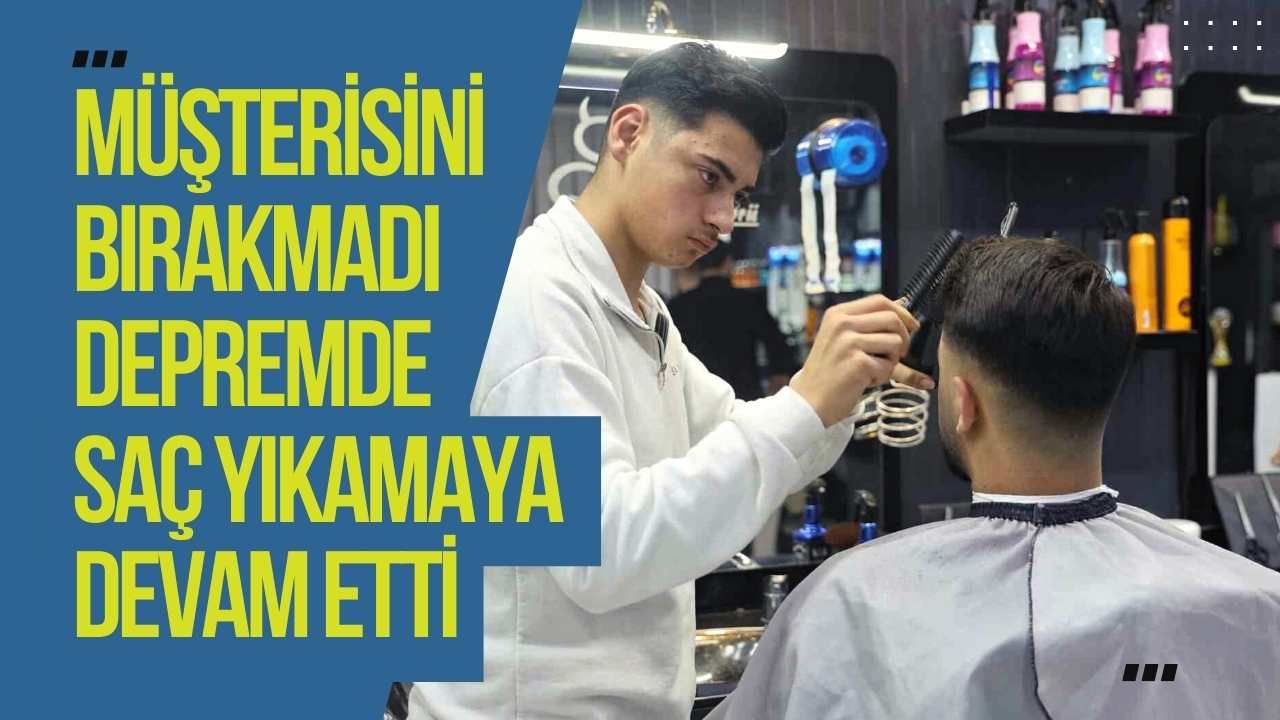 Deprem sırasında berber koltuklarında tıraş olan bazı müşteriler korkuyla yerlerinden fırlayıp dışarı kaçarken, Sürmeli ise saç yıkamaya devam etti. O anlar güvenlik kamerasına saniye saniye yansıdı. Görüntülerde, kuaförün sarsıntıya rağmen elindeki işi bırakmaması ve müşterisinin de bu duruma tepkisiz kalması dikkat çekti.
