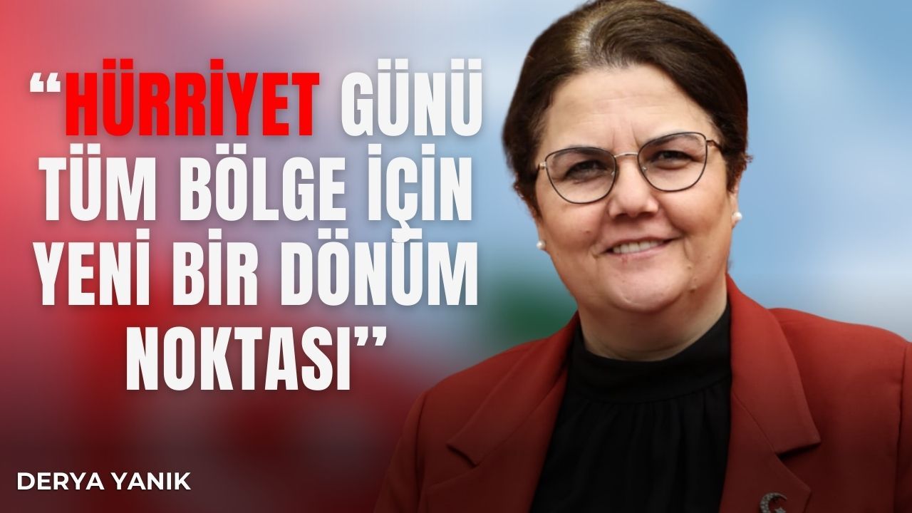 Mesajının sonunda Suriye halkının “Hürriyet Günü”nü kutlayan Derya Yanık, yeni dönemin sadece Suriye’de değil, tüm bölgede adalet, huzur ve refahın kapısını aralamasını temenni etti. Türkiye’nin her koşulda Suriye halkının yanında olacağını ifade eden Yanık, barış ve istikrarın korunması için hem masada hem sahada destek vermeyi sürdüreceklerini dile getirdi. Açıklama, bölgenin geleceğine dair temkinli fakat umut dolu bir perspektif sundu.