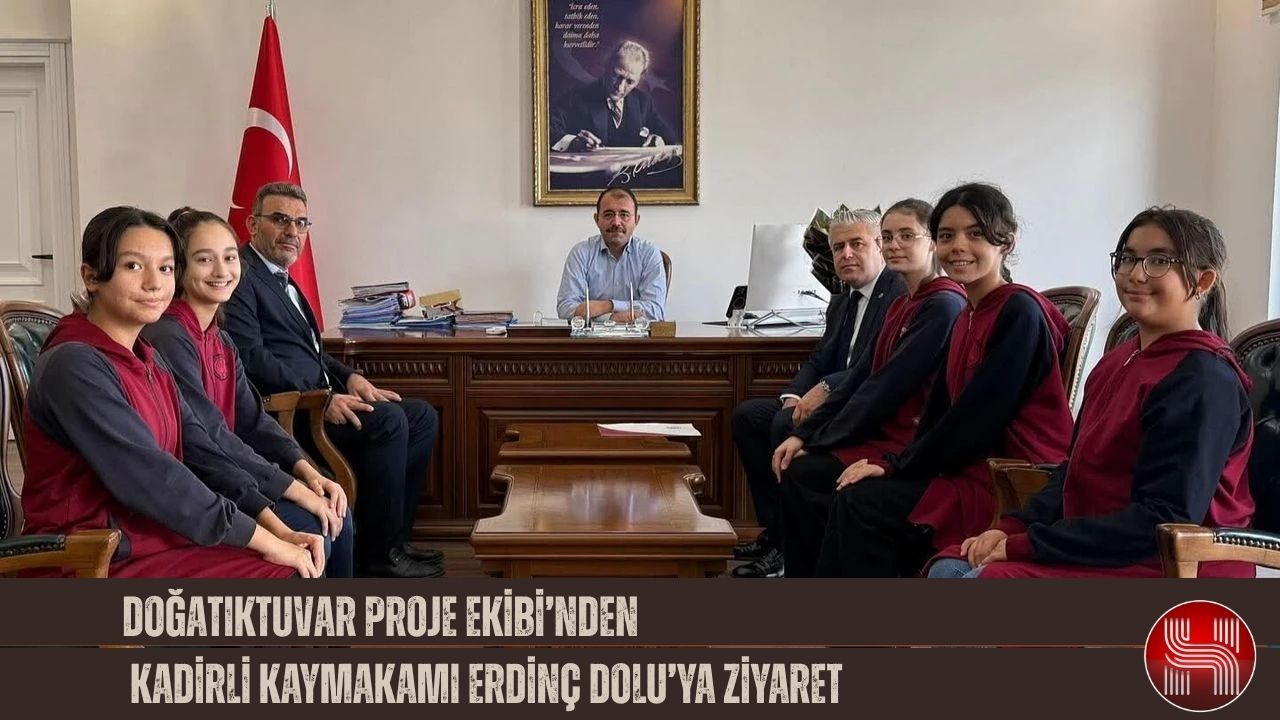 Osmaniye’nin Kadirli ilçesinde, Şehit Mehmet Acar İmam Hatip Ortaokulu’nun DOĞATIKTUVAR Proje Ekibi, Kaymakam Erdinç Dolu’yu makamında ziyaret etti.