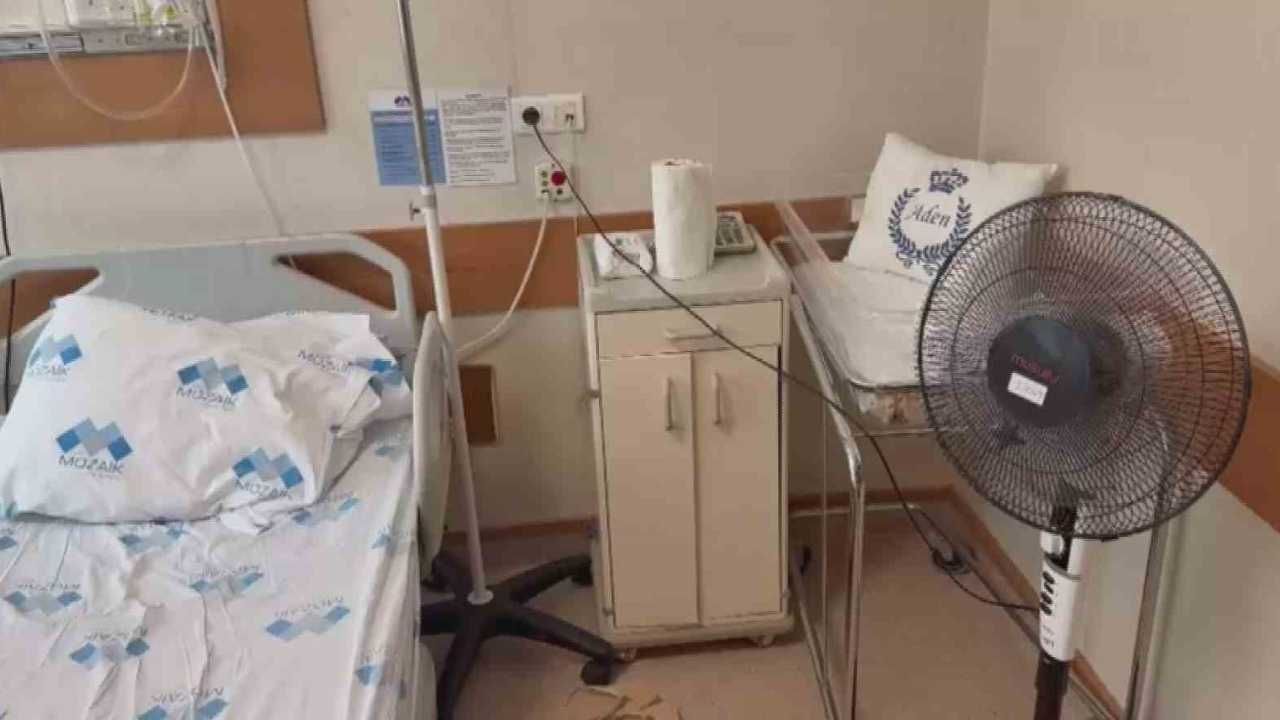 Hatay’ın Antakya ilçesinde yaşayan Hikmet Karaoğlan’ın eşi, 5 ay önce Özel Mozaik Hastanesi’nde doğum yaptı. Aile, doğum için 46 bin 400 TL ödeme yaptıktan sonra 1321 numaralı odaya yerleştirildi. İddiaya göre odadaki klimanın arızalı olduğu belirtilerek aileye vantilatör verildi. Sıcak havada bu duruma tepki gösteren Karaoğlan, yaşananları kayıt altına aldı.