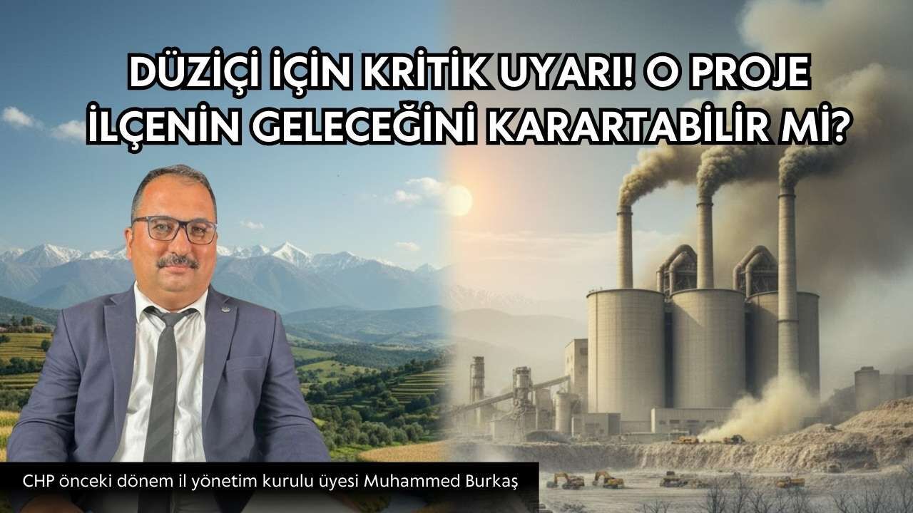 Düziçi, temiz havası ve verimli tarım arazileriyle bölgenin parlayan yıldızı konumundayken, gündeme gelen çimento fabrikası projesi endişe yaratıyor. Sanayi yatırımlarının ekonomik getirileri bir yana, projenin ekolojik ve yaşamsal maliyetleri masaya yatırıldı. Muhammed Burkaş, konuya ilişkin yaptığı açıklamada ilçenin geleceğinin "kısa vadeli ekonomik vaatlere" feda edilmemesi gerektiğini vurguladı.