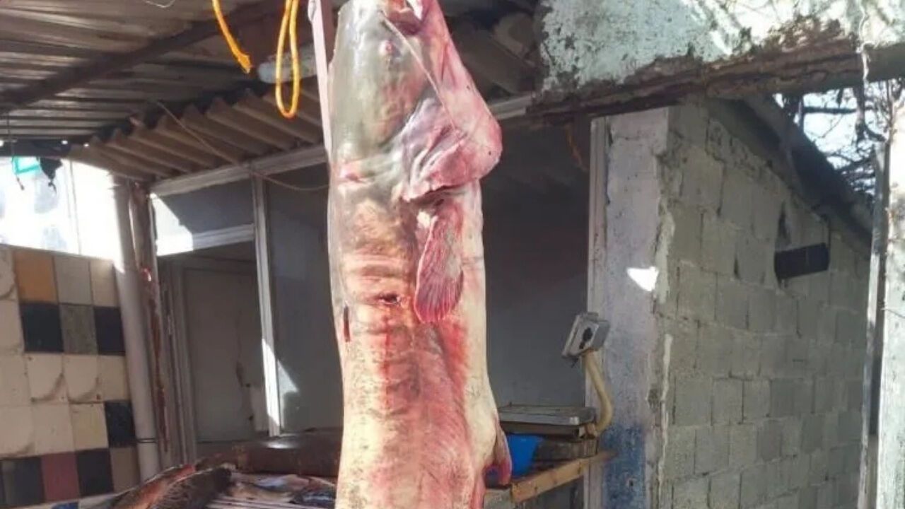 Düziçi’nde balıkçıların ağına takılan 2 metre uzunluğundaki dev yayın balığı, ilçe merkezindeki tezgahta sergilenmeye başlayınca vatandaşların yoğun ilgisiyle karşılaştı.