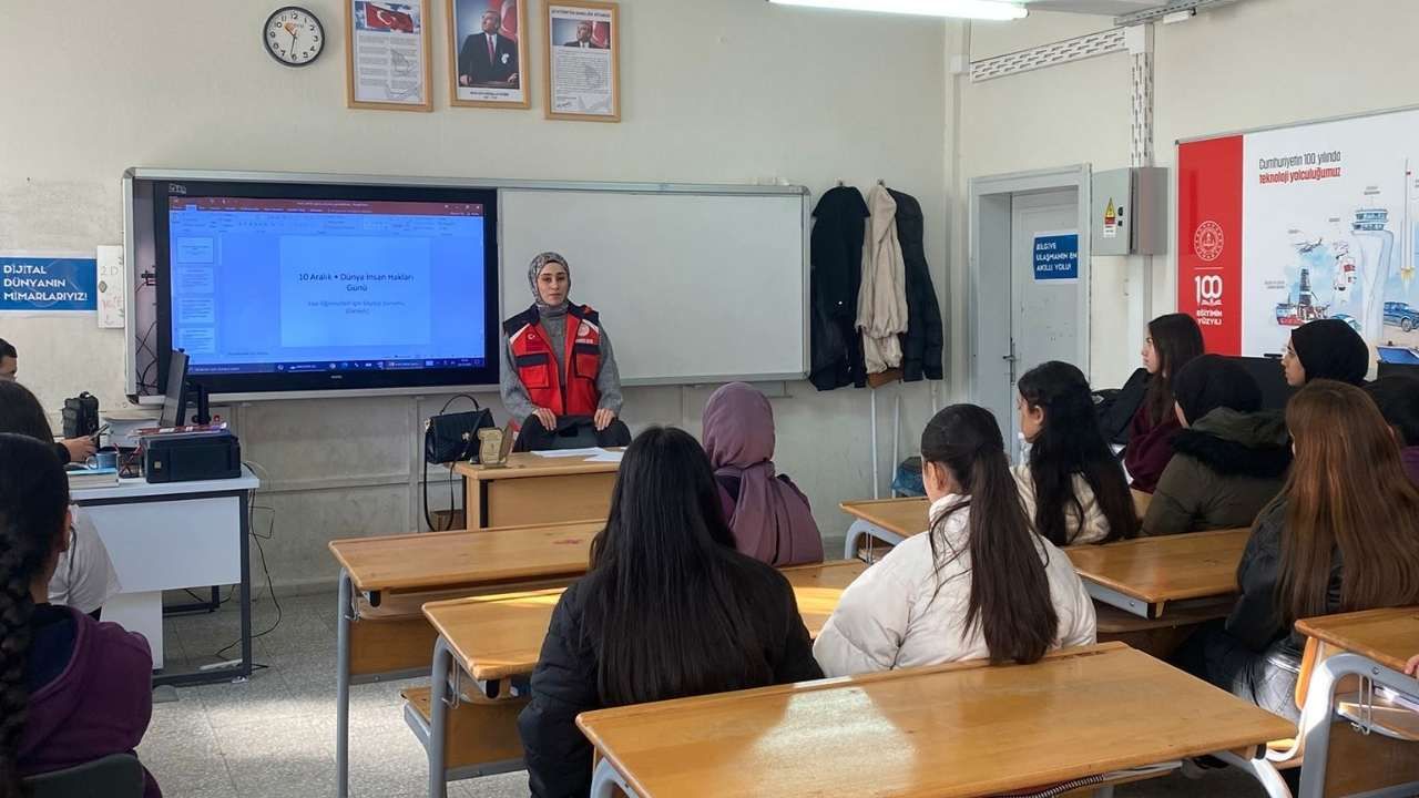 Eğitim Birimi personeli tarafından yapılan sunumda, Birleşmiş Milletler İnsan Hakları Evrensel Beyannamesi'nin tarihçesi ve içeriği ele alındı. Öğrencilere; yaşama hakkı, eğitim hakkı, düşünceyi ifade özgürlüğü ve ayrımcılığın önlenmesi gibi evrensel insan hakları detaylıca anlatıldı.