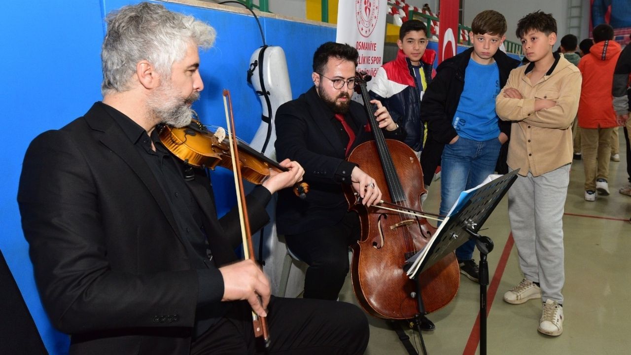 Resim ve El Sanatları Sergisi yalnızca görsel sanatlarla sınırlı kalmadı. Program kapsamında gençlik merkezi üyeleri tarafından keman ve çello eşliğinde müzik dinletisi sunuldu. Spor salonunda yankılanan melodiler, sergi alanındaki atmosferi daha da sıcak hale getirdi.