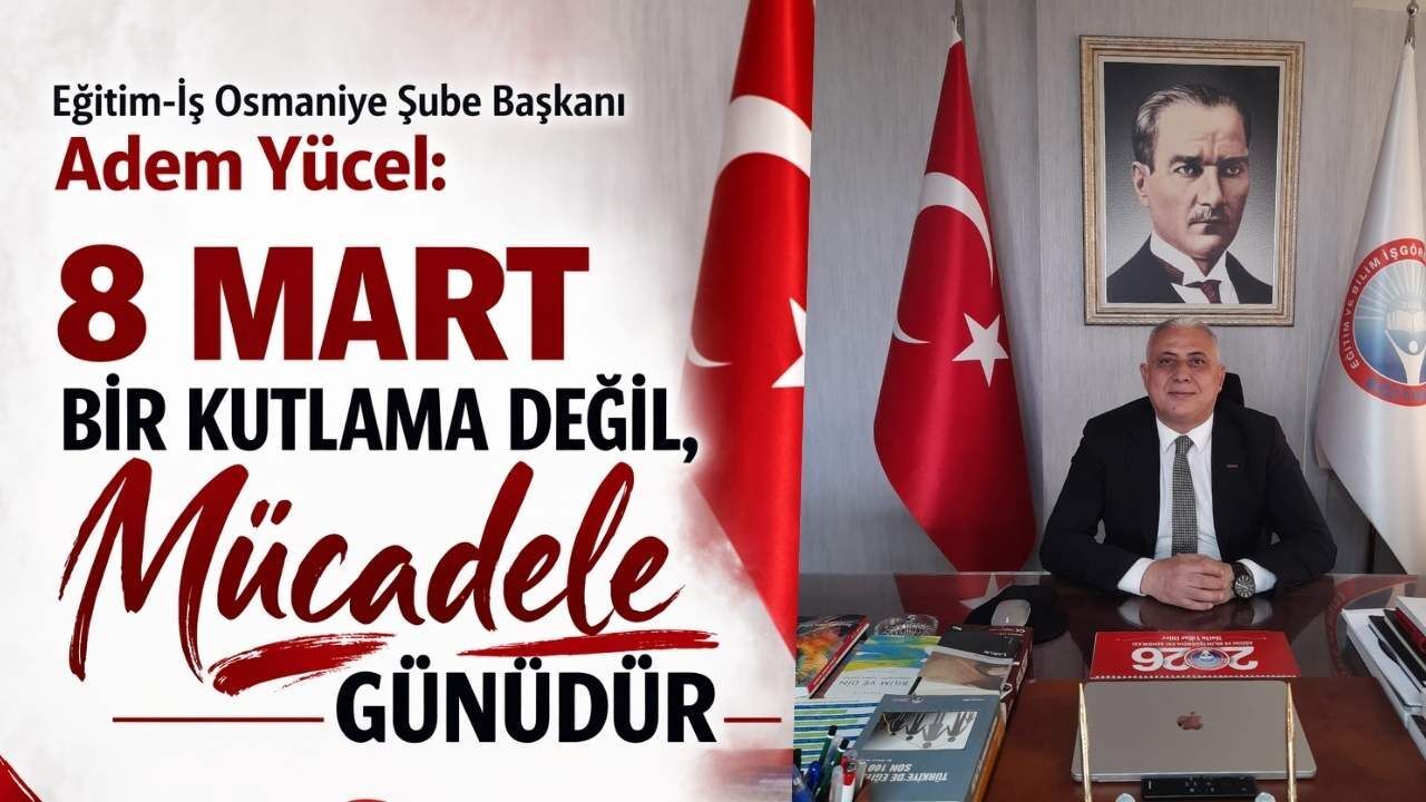 Eğitim ve Bilim İşgörenleri Sendikası (Eğitim-İş) Osmaniye İl Başkanı Adem Yücel, 8 Mart Dünya Emekçi Kadınlar Günü kapsamında sendika binasında basın açıklaması gerçekleştirdi. Yücel, 8 Mart’ın bir kutlama değil, sömürüye ve eşitsizliğe karşı bir "mücadele günü" olduğunun altını çizdi.