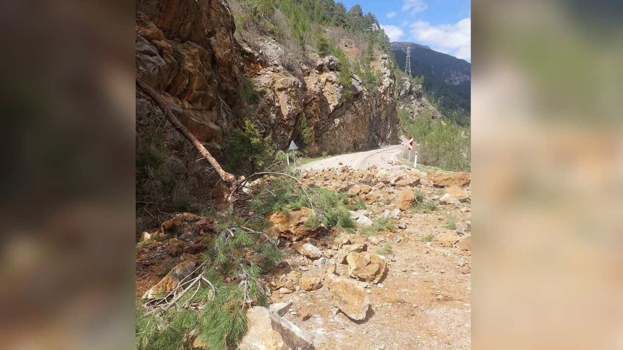 Yamaçtan kopan kaya parçaları ve toprak birikintisi yolu kapladı.
