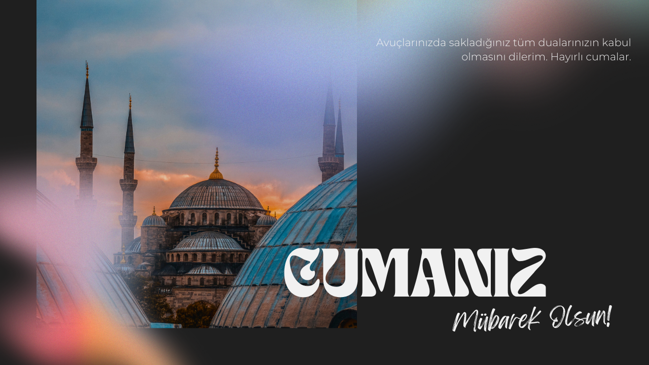Kalbiniz imanla, ruhunuz huzurla dolsun. Hepimize hayırlı olsun. Kurulan bağlar ne kopsun, ne de dostluklar unutulsun. CUMANIZ mübarek olsun.