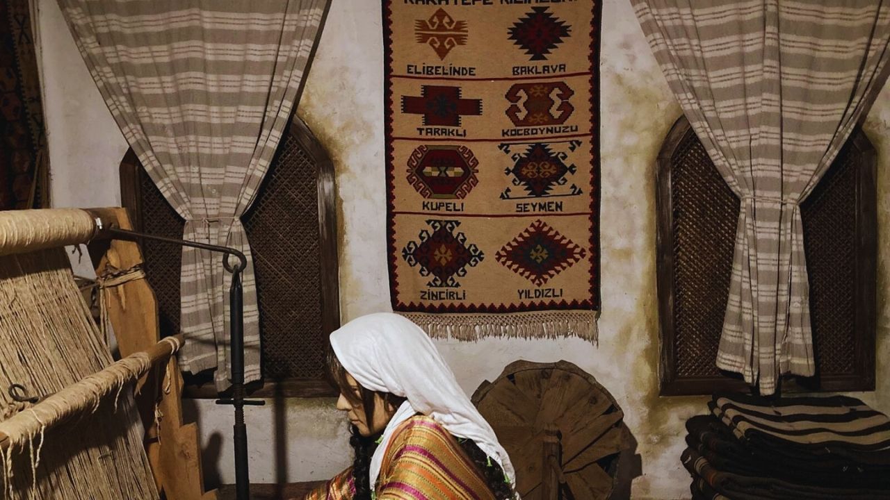 Karatepe kilimleri de müzede yerini alıyor. Çıkrıkta ip eğrildikten sonra kök boyaları ile yapılan bu kilimler Osmaniye için büyük önem taşıyor. Karşı duvarda asılı olan her motifin bir anlamı bulunuyor. Kilime bu motifler işlenirken aslında duygular işleniyor. Aşk, ölüm, ayrılık, mutluluk…