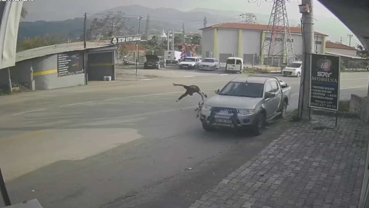 Hatay’ın Dörtyol ilçesinde meydana gelen trafik kazasında, karşı şeride geçen motosiklet, seyir halindeki bir ciple çarpıştı. Çarpışmanın şiddetiyle motosikletin sürücüsü havaya fırlayarak metrelerce savruldu. Güvenlik kamerası tarafından saniye saniye kaydedilen kaza, görenleri dehşete düşürdü. Yaralı sürücü olay yerine çağrılan sağlık ekipleri tarafından hastaneye kaldırıldı.