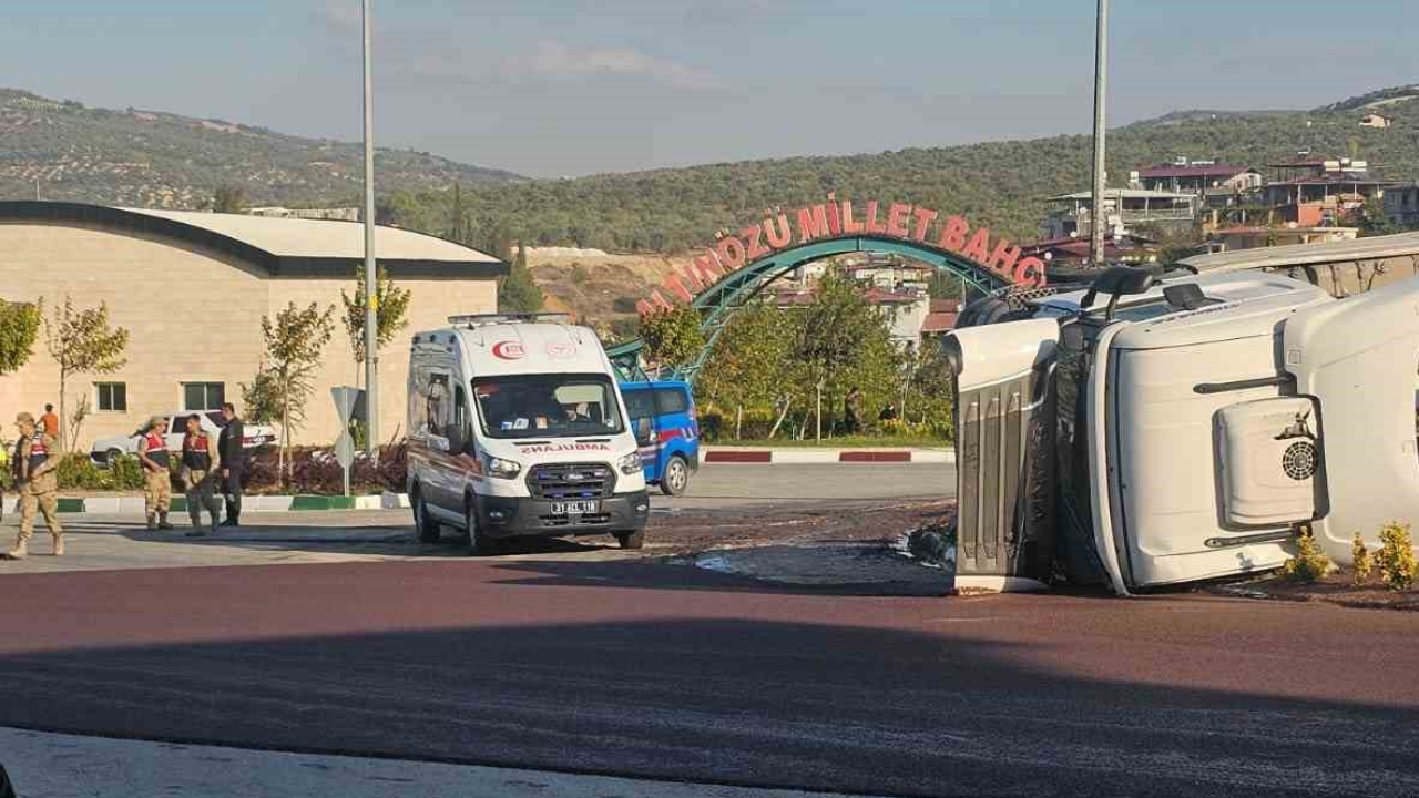 Hatay’ın Altınözü ilçesi kent merkezinde zeytin posası yüklü tırın devrilmesi sonucu bir kişi yaralandı. Seyir halindeyken henüz belirlenemeyen bir nedenle devrilen tır, yolu trafiğe kapattı. Kazayı gören vatandaşlar durumu 112 Acil Çağrı Merkezi’ne bildirdi.