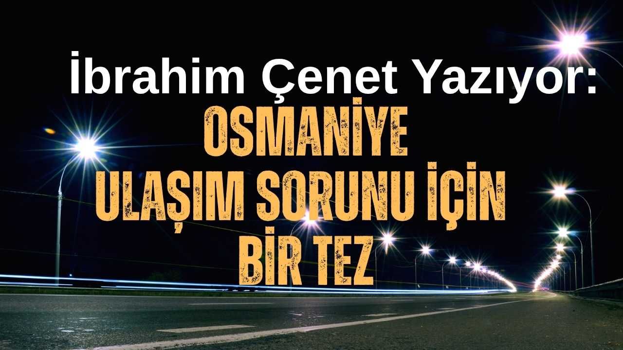 Osmaniyenin ulaşım sorunu için bir tezimiz var. Önce ki sayıların birisinde Osmaniyenin hava kirliliğine bir çözüm önermiştik. Bu tez için : Akyar köyü ile Erzin Gökdere köyü arasına geniş bir kanal açılmasını ve bu kanalın önemli hesaplaması ve yan unsurlarıyla hesaplamış ve sizlere sunmuştuk. Bu sayımızda da Osmaniyenin ulaşım sorununa bir tezimizi sunacağız.: