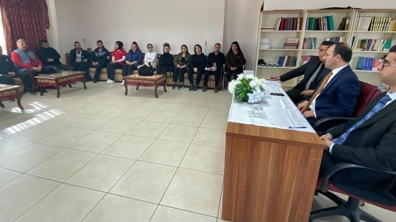 Erdinç Dolu, ilçedeki sportif başarıların artırılması ve gençlerin spora yönlendirilmesi amacıyla Kadirli İlçe Gençlik ve Spor Müdürlüğü bünyesinde görev yapan antrenörlerle bir araya geldi.