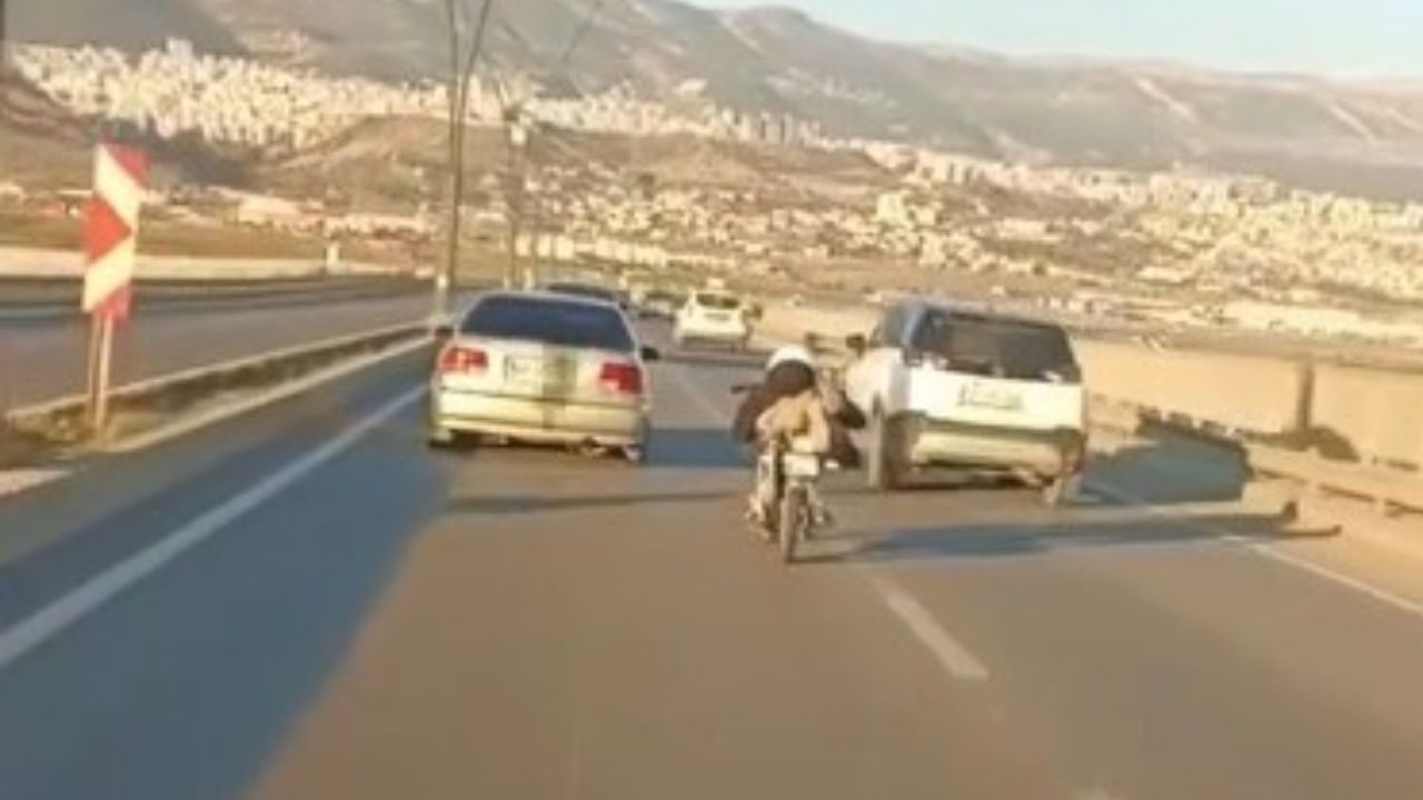 Kahramanmaraş’ta trafikte yaşanan tehlikeli bir an, cep telefonu kamerasıyla kaydedildi. Onikişubat ilçesinde seyir halinde olan bir motosiklet sürücüsünün, motosikletin üzerine yüzüstü yatarak yoluna devam etmesi görenleri şaşkına çevirdi. Hem kendi hayatını hem de trafikteki diğer sürücülerin can güvenliğini hiçe sayan bu davranış, yolda ilerleyen bir araçtaki vatandaş tarafından saniye saniye görüntülendi. Görüntüler, trafikte dikkatsiz ve sorumsuz hareketlerin ne denli büyük riskler oluşturduğunu bir kez daha gözler önüne serdi.