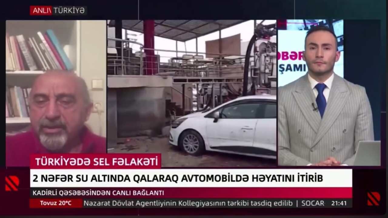 Osmaniye'nin Kadirli ilçesinde son günlerde etkili olan şiddetli sağanak yağışlar büyük bir sel felaketine yol açtı. Kardeş ülke Azerbaycan’da yayın yapan Real TV kanalı bölgedeki son durumu izleyicilerine aktarmak için Kadirli Gazeteciler Cemiyeti Başkanı Muzaffer Yüksel Kaya ile canlı bağlantı gerçekleştirdi. Felaketin boyutlarının tüm çıplaklığıyla ele alındığı yayında ilçede yaşanan can ve mal kayıpları gündeme taşındı.
