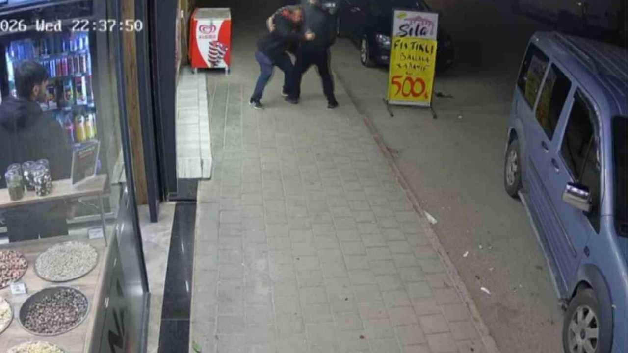 Sokak ortasında yaşanan kavga çevrede bulunan vatandaşların dikkatini çekti. O anlar ise çevredeki bir iş yerinin güvenlik kamerası tarafından kaydedildi.