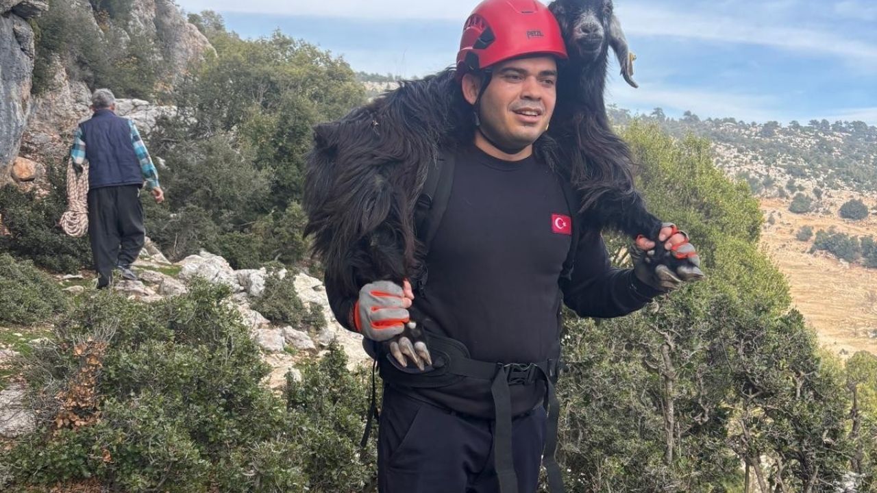 Mersin Büyükşehir Belediyesi İtfaiyesi Arama Kurtarma ekipleri, hayvan sahibinin rehberliğinde patika yoldan yaklaşık 50 dakika yürüyerek keçilerin bulunduğu noktaya ulaştı. Ağaç ve kayalıklar kullanılarak güvenli istasyon kuran ekipler, yaklaşık 25-30 metre aşağı indi.