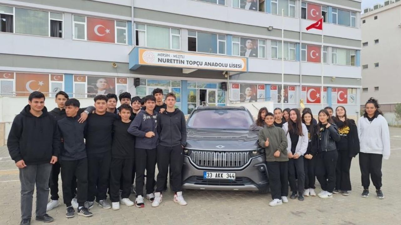 Mersin'de lise öğrencileri, okul bahçesine getirilen Türkiye’nin ilk yerli ve milli otomobili TOGG’u inceleyerek milli teknoloji hamlesini yerinde görme imkânı elde etti. “Tüketime değil, üretime dayalı Yerli Malı Haftası” etkinliği çerçevesinde düzenlenen programda öğrenciler TOGG’a büyük ilgi gösterdi. Etkinlik hakkında bilgi veren Okul Müdürü Faruk Temel, öğrencilerin milli, manevi ve kültürel değerlerle yetişmesinin önemine vurgu yaparak şunları söyledi:
