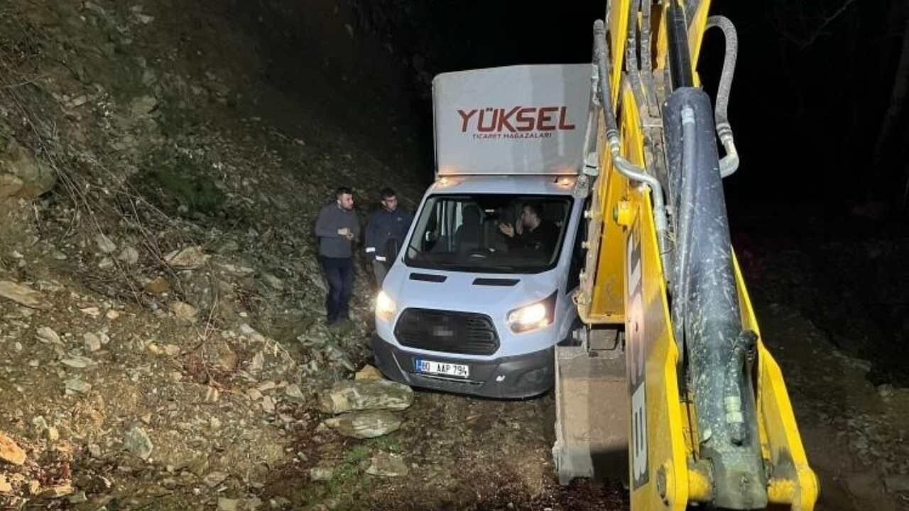 Hatay’da beyaz eşya sevkiyatı için yola çıkan 3 kişi, navigasyonun hatalı yönlendirmesi sonucu zorlu bir dağ yoluna girerek mahsur kaldı. Amanos Dağları’nda çamura saplanan araç hareket edemez hale gelirken, ekiplerin müdahalesiyle vatandaşlar güvenli şekilde kurtarıldı.