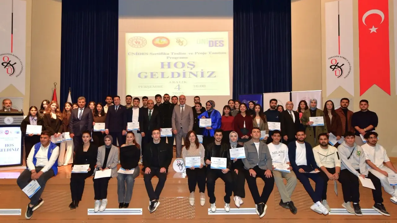 Programın en özel anı ise sertifika töreni oldu. ÜNİDES’in 2., 3. ve 4. dönemlerinde projelerini başarıyla tamamlayan öğrencilere sertifikaları protokol üyeleri tarafından takdim edildi. Yetkililer, gençlerin üretkenliğinin ve proje geliştirme becerilerinin üniversite için büyük bir değer olduğunu belirtti.