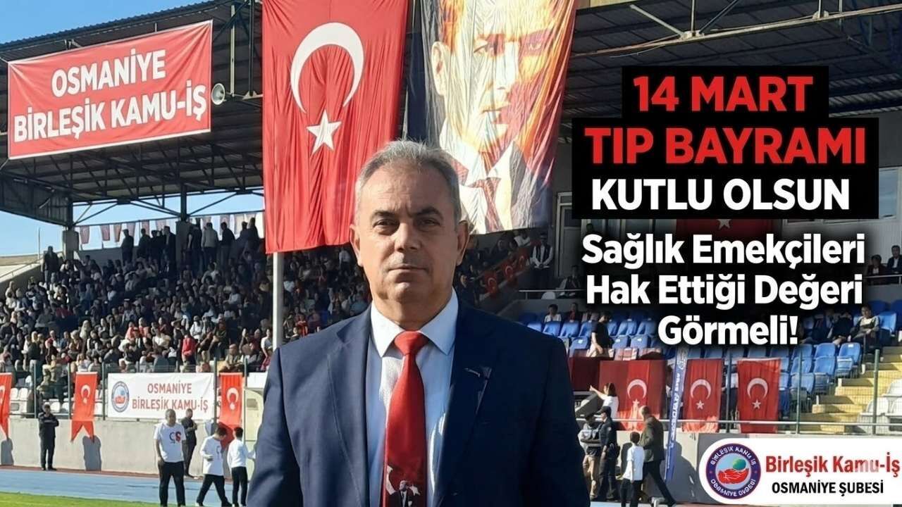 Birleşik Kamu-İş Konfederasyonu Osmaniye İl Başkanı Kubilay Güvel, 14 Mart Tıp Bayramı dolayısıyla bir açıklama yaparak sağlık emekçilerinin bayramını kutlarken, sektörde yaşanan yapısal sorunlara ve çalışma koşullarına dair sert eleştirilerde bulundu.