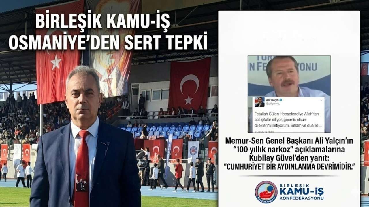 Birleşik Kamu-İş Konfederasyonu Osmaniye İl Başkanı Kubilay Güvel, Memur-Sen Genel Başkanı Ali Yalçın’ın kamuoyuna yansıyan açıklamalarına sert tepki gösterdi. Güvel, yaptığı yazılı açıklamada Yalçın’ın kullandığı ifadelerin Cumhuriyet değerlerini hedef aldığını savundu.