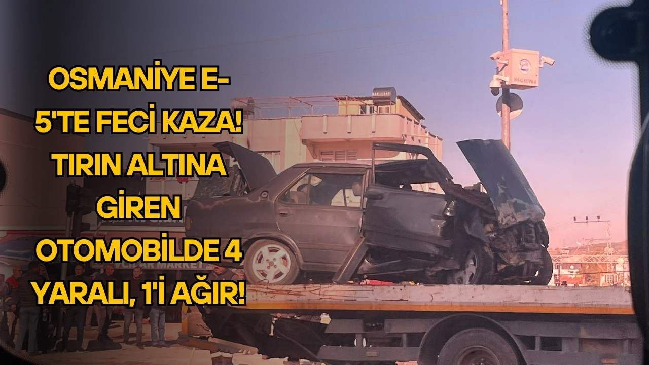 Toprakkale ilçesi Kışla Mahallesi mevkii E-5 karayolu üzerindeki trafik ışıklarında bu sabah saatlerinde meydana gelen feci trafik kazası, yürekleri ağızlara getirdi. Bir otomobilin, seyir halindeki tırın altına girmesi sonucu araç hurdaya dönerken, otomobilde bulunan 4 kişilik aile yaralandı.