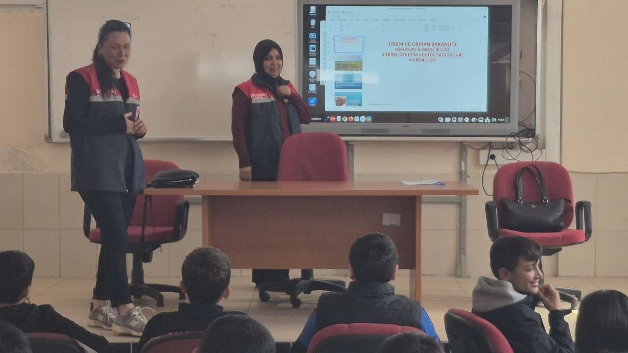 Osmaniye İl Tarım ve Orman Müdürlüğü, tarım arazilerinin verimliliğini korumak ve çevre kirliliğinin önüne geçmek amacıyla başlattığı eğitim seferberliğine hız kesmeden devam ediyor. “Anız Yakma, Geleceğini Karartma” sloganıyla yola çıkan Bitkisel Üretim ve Bitki Sağlığı Şubesi ekipleri, farkındalık çalışmalarının ilk durağında ortaokul öğrencileriyle bir araya geldi.