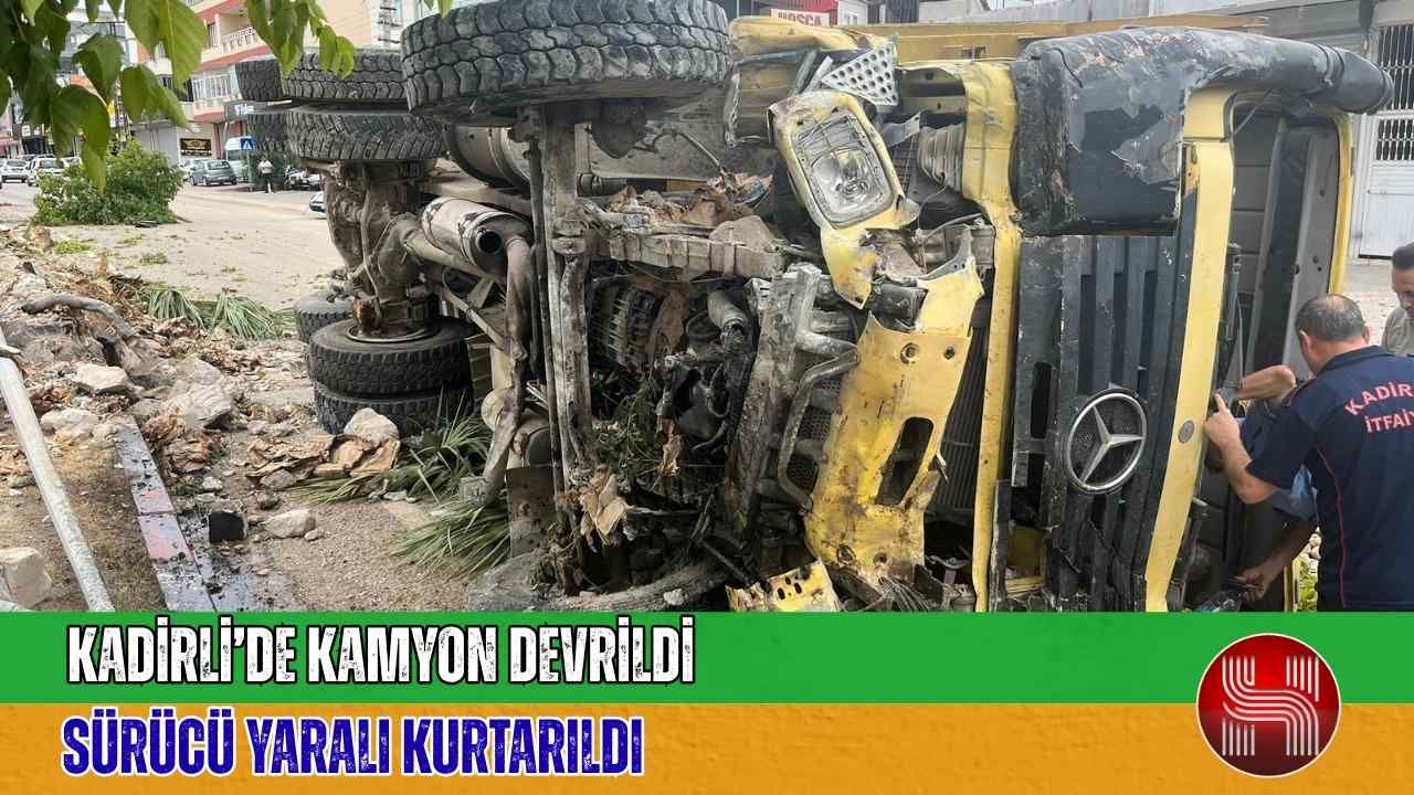 Osmaniye'nin Kadirli ilçesinde, sürücüsünün direksiyon hakimiyetini kaybettiği kamyonun orta refüje çarparak devrilmesi sonucu meydana gelen kazada sürücü yaralandı.
