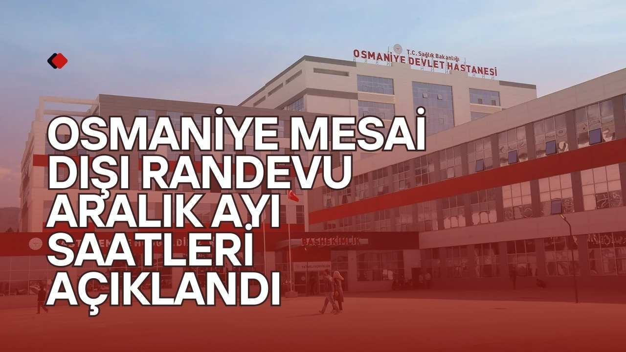 Osmaniye Eğitim ve Araştırma Hastanesi'nde Aralık ayında 17.00 – 22.00 saatleri arasında sunulacak mesai dışı poliklinik hizmetleri şunlardır: