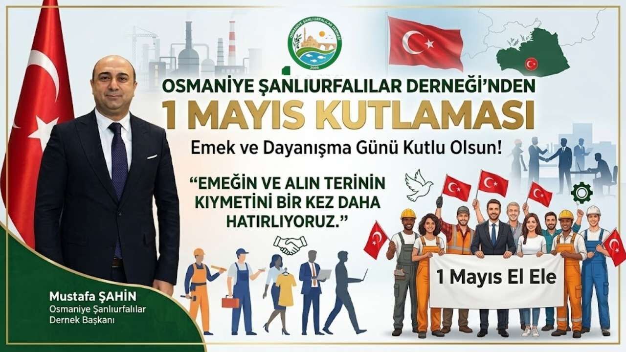 1 Mayıs Emek ve Dayanışma Günü, tüm yurtta olduğu gibi Osmaniye’de de çeşitli mesajlarla kutlanıyor. Osmaniye Şanlıurfalılar Dernek Başkanı Mustafa Şahin, günün anlam ve önemine binaen anlamlı bir açıklama yaparak hemşehrilerine ve tüm çalışanlara seslendi.