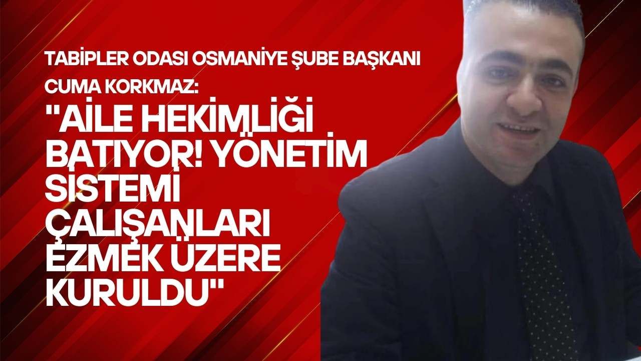 Tabipler Odası Osmaniye Şube Başkanı Cuma Korkmaz, aile sağlığı merkezlerinde (ASM) görev yapan hekimler ve sağlık çalışanlarının giderek derinleşen sorunlarına ilişkin kapsamlı bir açıklama yaptı. 2025 yılının son ayına girilirken sahada yaşanan sıkıntıların artık sürdürülemez boyuta ulaştığını belirten Korkmaz, mevcut sağlık yönetiminin aile hekimliği sistemini çıkmaza sürüklediğini söyledi. ASM’lerde hem sağlık çalışanlarının hem de hizmet alan yurttaşların mağdur edildiğini vurgulayan Korkmaz, “Biz bu tabloyu kabul etmiyoruz. Haklarımız ve halkın sağlık hakkı için buradayız” dedi.