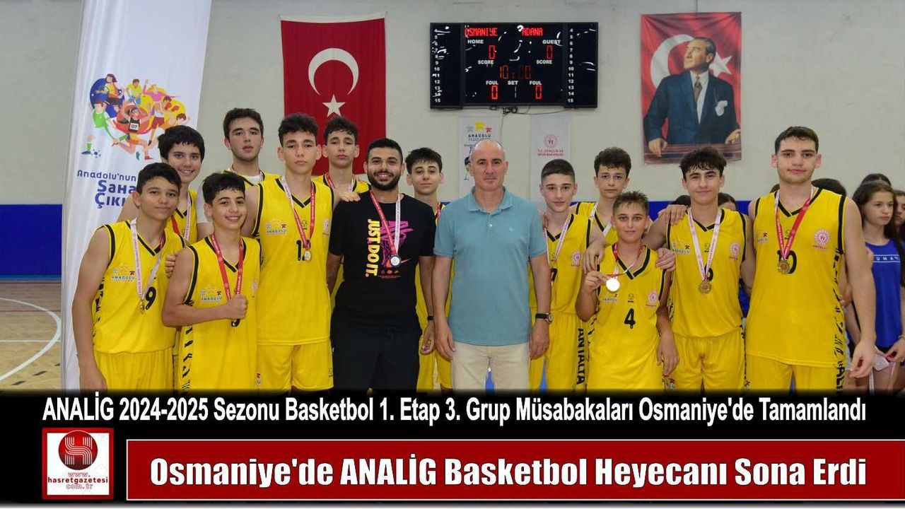 Gençlik ve Spor Bakanlığı Spor Hizmetleri Genel Müdürlüğü tarafından düzenlenen Anadolu Yıldızlar Ligi (ANALİG) 2024-2025 sezonu Basketbol 1. Etap 3. Grup Bay-Bayan Müsabakaları, Osmaniye’de başarıyla tamamlandı.aErkekler karşılaşmaları Tosyalı Spor Salonu’nda, kızlar karşılaşmaları ise Merkez Spor Salonu’nda oynandı.