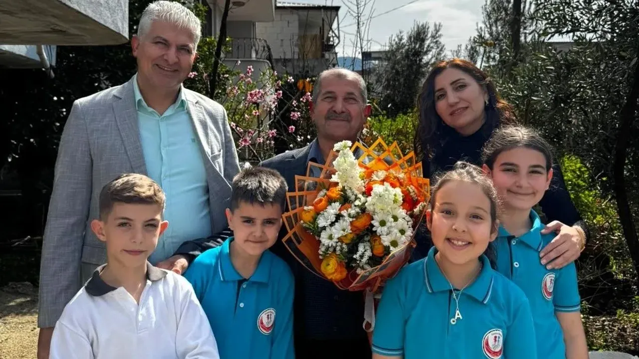 Güneysu İlkokulu Müdürü Halil Sünbül ve öğrenciler, emekli sınıf öğretmeni İlyas Önen’i evinde ziyaret etti.