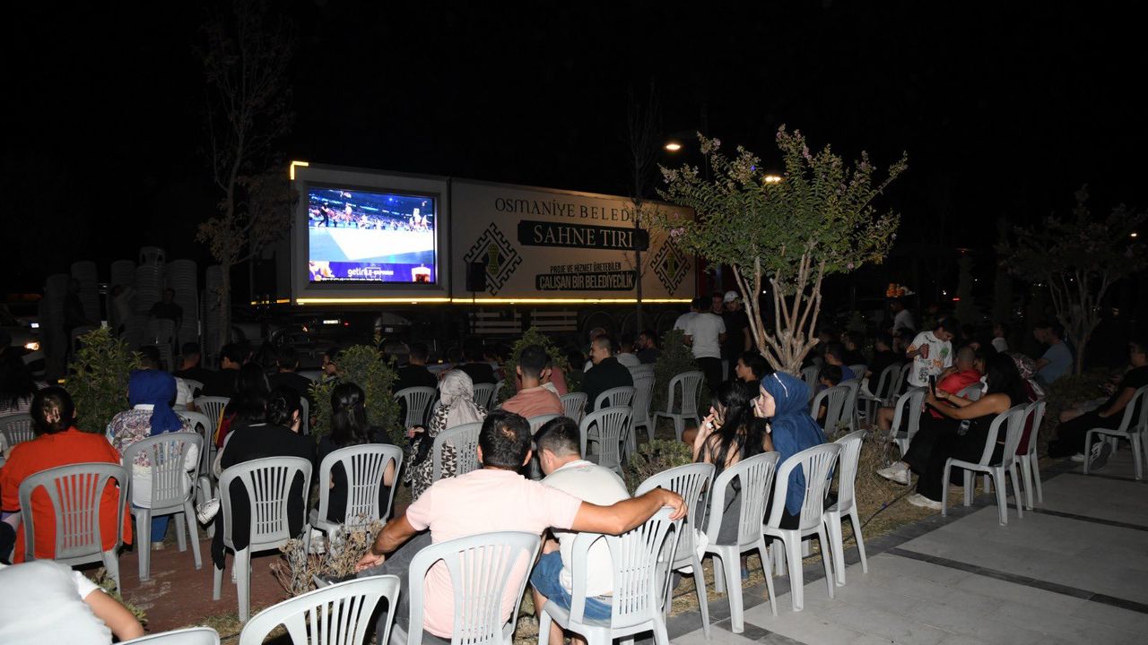 Türkiye-Yunanistan yarı final mücadelesinin heyecanı, Osmaniye Belediyesi'nin Sahne TIR'ında kurulan dev ekranda vatandaşlarımızla birlikte yaşandı. Yüzlerce Osmaniyeli, bu dev ekranda bir araya gelerek milli takımımıza destek oldu ve bu gururu omuz omuza paylaştı. Millilerin her sayısında yükselen coşku, Osmaniye sokaklarına taştı.