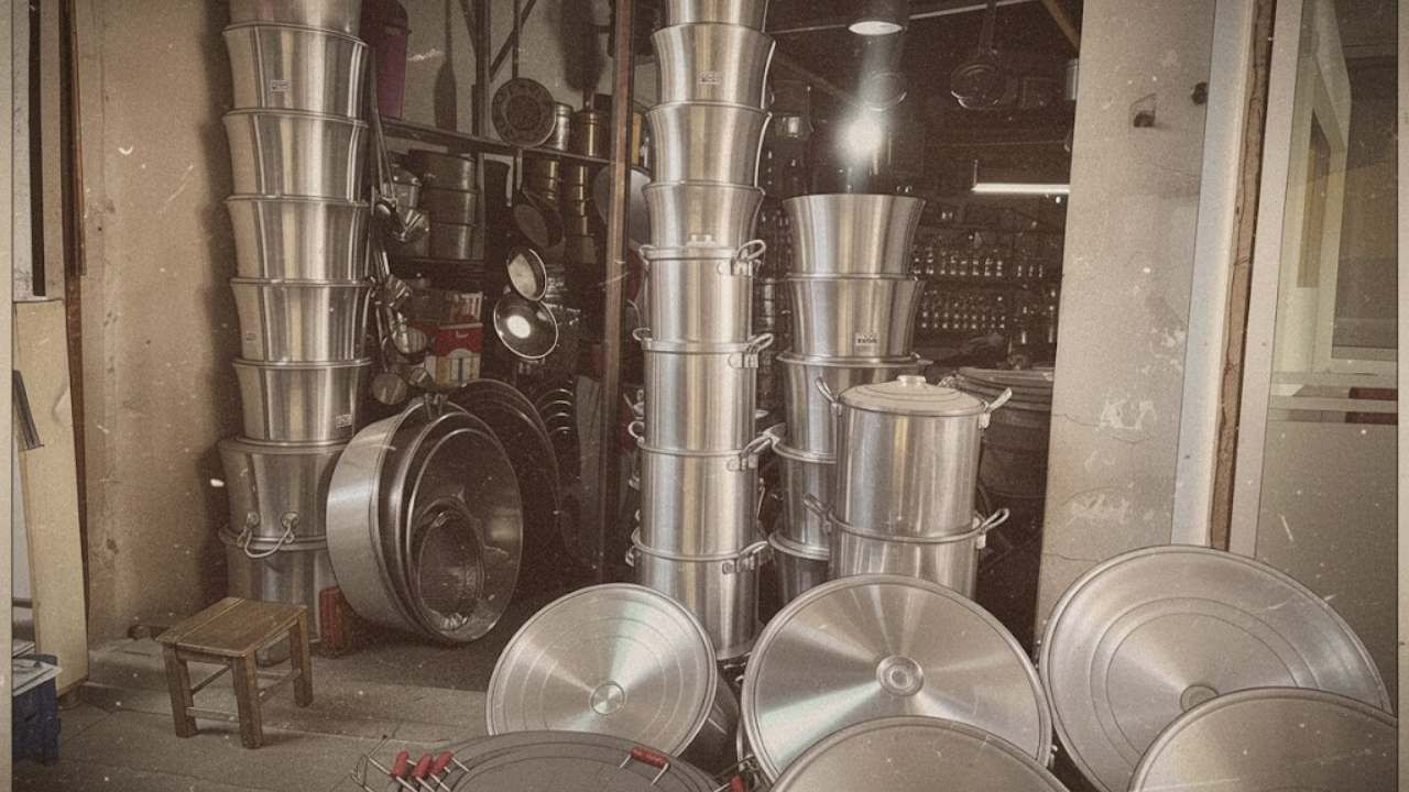 Görselde yer alan dikey dizilmiş alüminyum kazanlar ve geniş siniler, Osmaniye’de hala büyük yer sofralarının kurulduğunun ve geleneksel pişirme yöntemlerinden vazgeçilmediğinin bir kanıtı. Modern tencerelerin yetersiz kaldığı büyük organizasyonlarda, bu dev kaplar mutfakların kurtarıcısı olmaya devam ediyor.