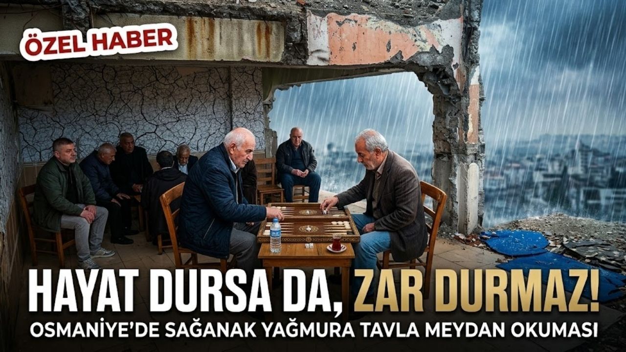 Osmaniye merkez ilçesinde etkili olan sağanak yağmur, hayatı olumsuz etkilerken ilginç bir görüntüye sahne oldu. Şehir merkezindeki bir kıraathanenin açık alanında tavla oynayan amcalar, aniden bastıran şiddetli yağmura aldırış etmeden oyunlarına devam etti.