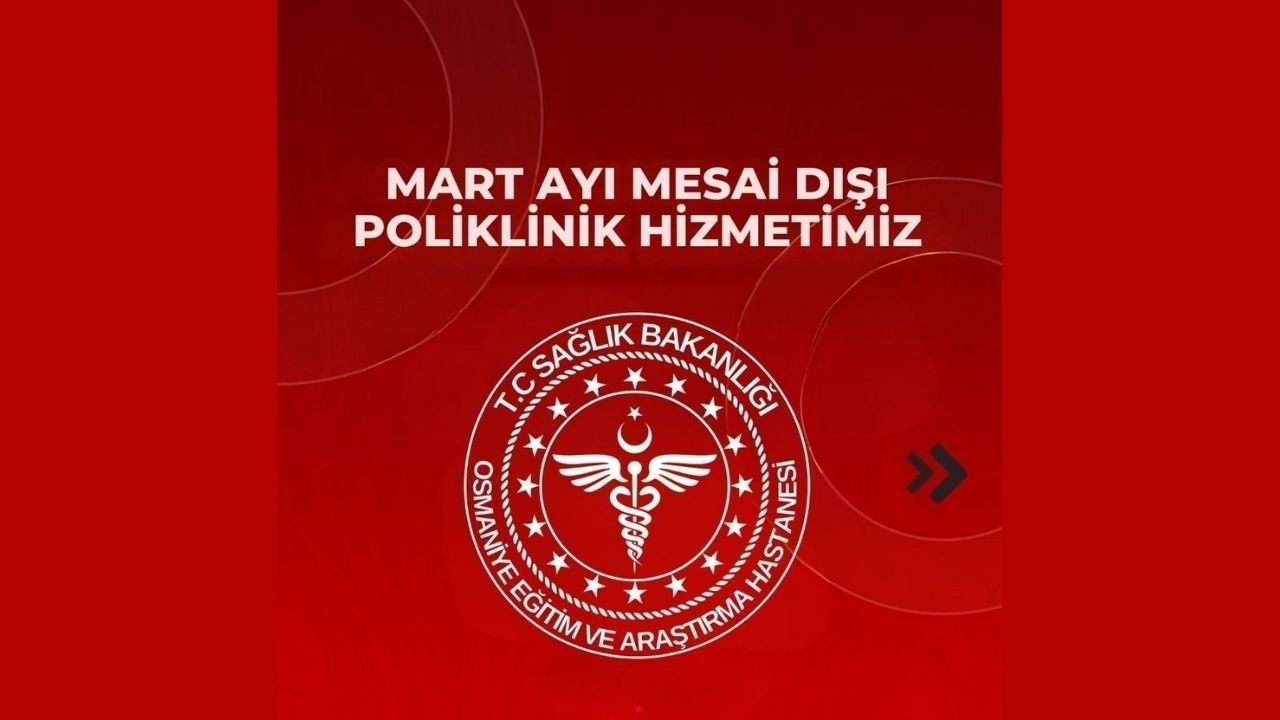 Osmaniye Eğitim ve Araştırma Hastanesi’nde uygulanan mesai dışı poliklinik hizmeti, hafta içi günlerde 17.00 ile 20.00 saatleri arasında devam ediyor. Bu saat diliminde belirlenen branşlarda hekimler tarafından muayene hizmeti veriliyor.