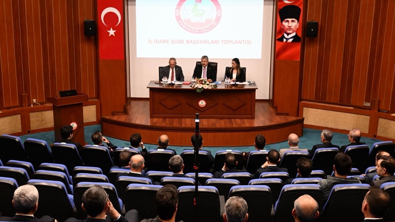 Osmaniye’de kamu hizmetlerinin daha etkin ve verimli yürütülmesi amacıyla düzenlenen İl İdare Şube Başkanları Toplantısı, Vali Dr. Erdinç Yılmaz’ın başkanlığında Valilik Ahmet Cevdet Paşa Toplantı Salonu’nda gerçekleştirildi. Toplantıya kamu kurum ve kuruluşlarının yöneticileri katıldı. Vali Yılmaz, toplantının açılışında yaptığı konuşmada gündem maddelerini paylaşarak, kentte yürütülen çalışmaların uyum içinde yürütülmesinin önemine dikkat çekti. Özellikle kurumlar arası koordinasyonun artırılması gerektiğini belirten Yılmaz, kamu hizmetlerinde kaliteyi yükseltmenin ortak bir sorumluluk olduğunu vurguladı.