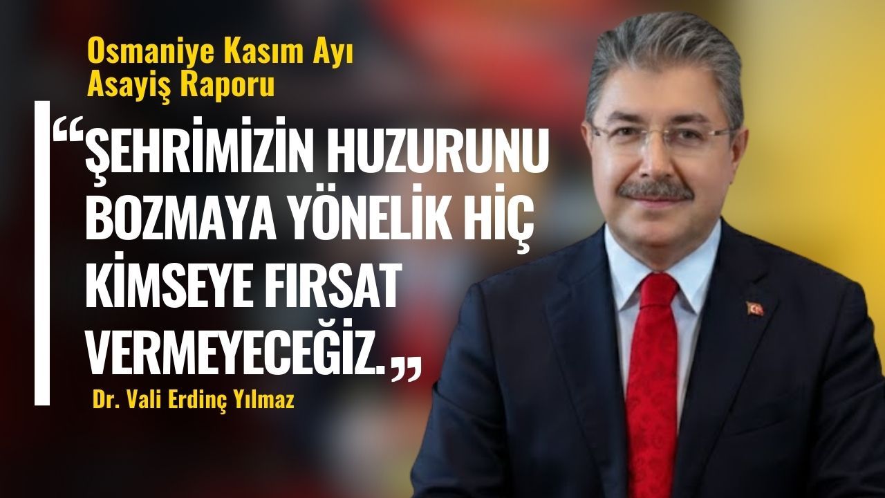Osmaniye Valisi Dr. Erdinç Yılmaz, 2025 yılı Kasım ayında il genelinde Polis ve Jandarma sorumluluk bölgesinde meydana gelen asayiş, güvenlik, terör ve trafik olaylarına ilişkin kapsamlı bir değerlendirme yaptı. Mülki idare amirleri, emniyet ve jandarma birimleri ile ilgili kurum temsilcilerinin katılımıyla gerçekleştirilen Asayiş ve Koordinasyon Toplantısı, şehirdeki güvenlik çalışmalarının genel çerçevesini ortaya koydu.
