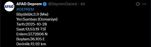 Büyüklük:3.9 (Mw)