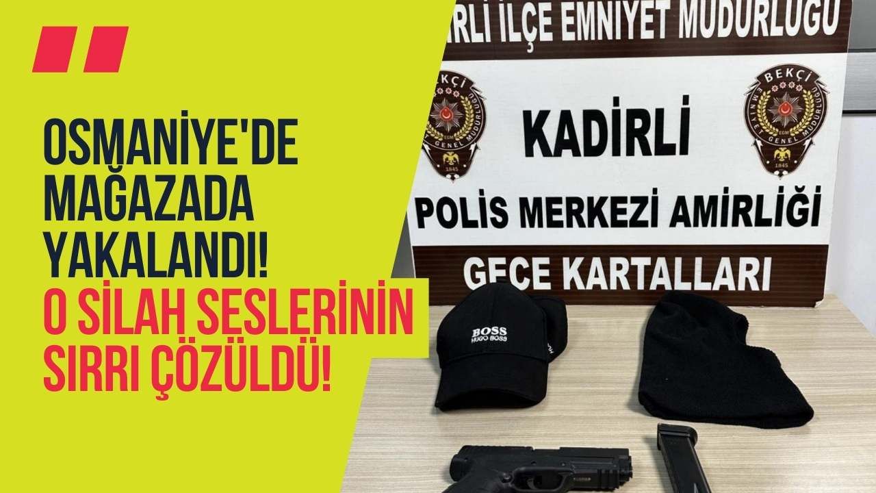 Osmaniye'de gece saatlerinde gelen silah sesleri ihbarı üzerine bölgeye giden bekçi ekipleri, kar maskesi takmış bir şüpheliyi bir mağazanın içinde saklanırken yakaladı. Olay yerinde yapılan incelemede 12 boş kovan, mağazada 4 mermi izi ve kullanılan tabanca ele geçirildi.