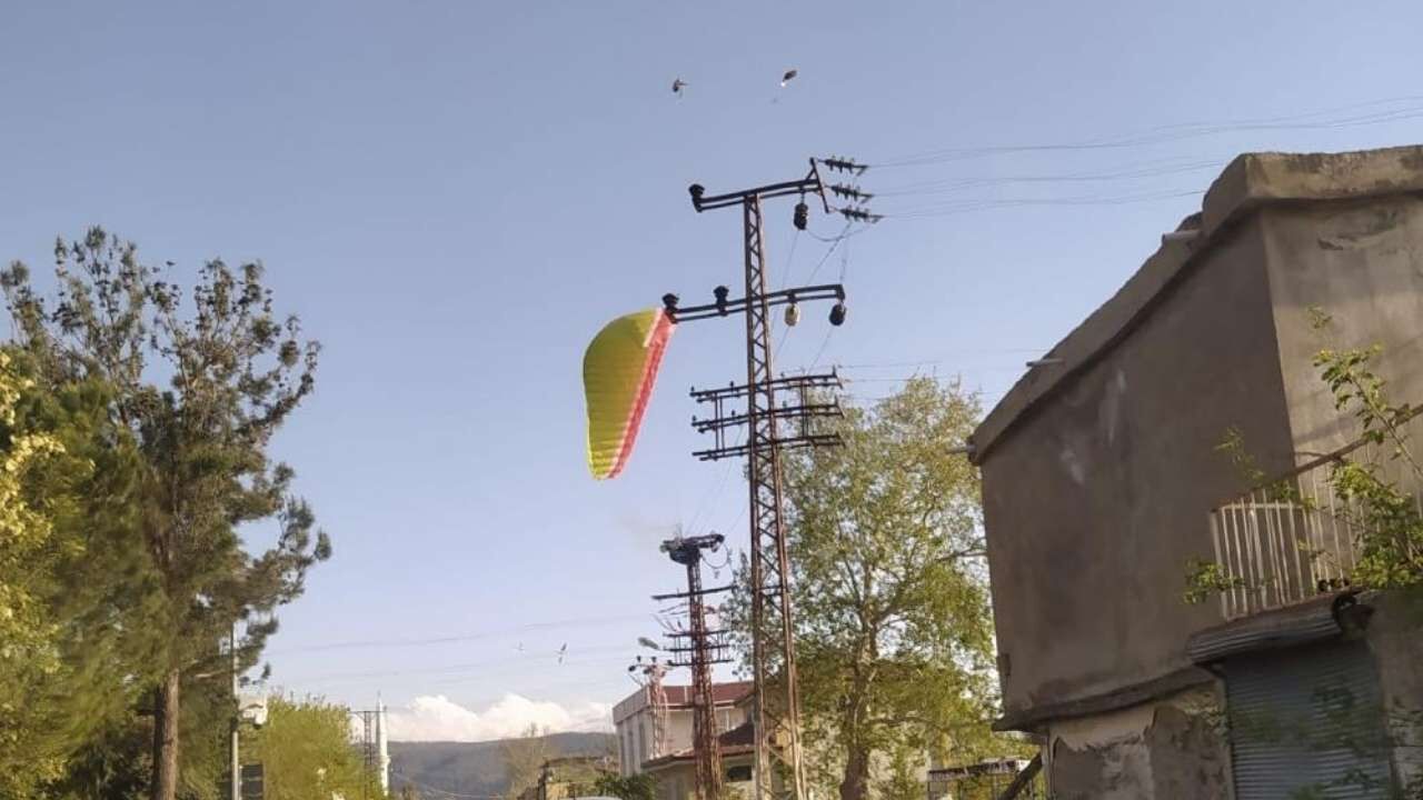 Düziçi Belediyesi itfaiye ekipleri, tellerde asılı kalan paraşütü güvenli bir şekilde indirerek hattı temizledi. Olayla ilgili inceleme başlatıldı.